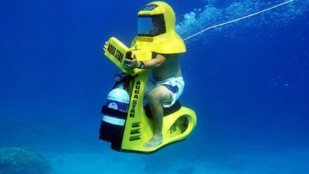 5. Xe điện dưới nước của Aquastar Chiếc xe điện dưới nước mang tên AS-2 Scooter thực sự là một thiết kế tuyệt vời mà hãng Aquastar dành tặng cho những người thích phiêu lưu, thám hiểm dưới lòng đại dương. Xe gồm 2 chỗ ngồi, được chạy bằng pin sạc điện. Với lượng ô-xy dự trữ trên xe, bạn có thể lặn dưới và khám phá đại dương bao la trong vòng 70 phút.